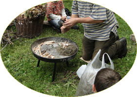 Feuer im Wandel der ZeitWir begeben uns auf die Spuren unserer Vorfahren und lernen die alten Techniken des Feuermachens kennen. Nachdem jeder den Streichholz-Führerschein bestanden hat und ausprobieren konnte, welche Naturmaterialien zum Feuermachen geeignet sind, beschäftigen wir uns mit den alten Methoden. Wie die Kelten werden wir das Feuerkind besingen und unser Feuer mit dem Feuerschläger entzünden. Und schließlich versuchen wir mit dem Feuerbohrer auf die ursprünglichste Art und Weise eine Glut zu entfachen. |